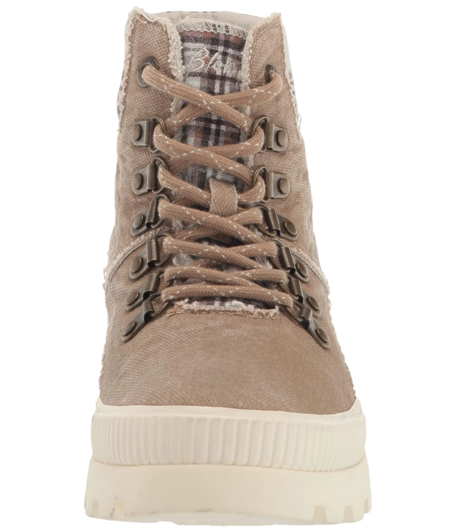 - Traditional lace-up closure with metal eyelets.